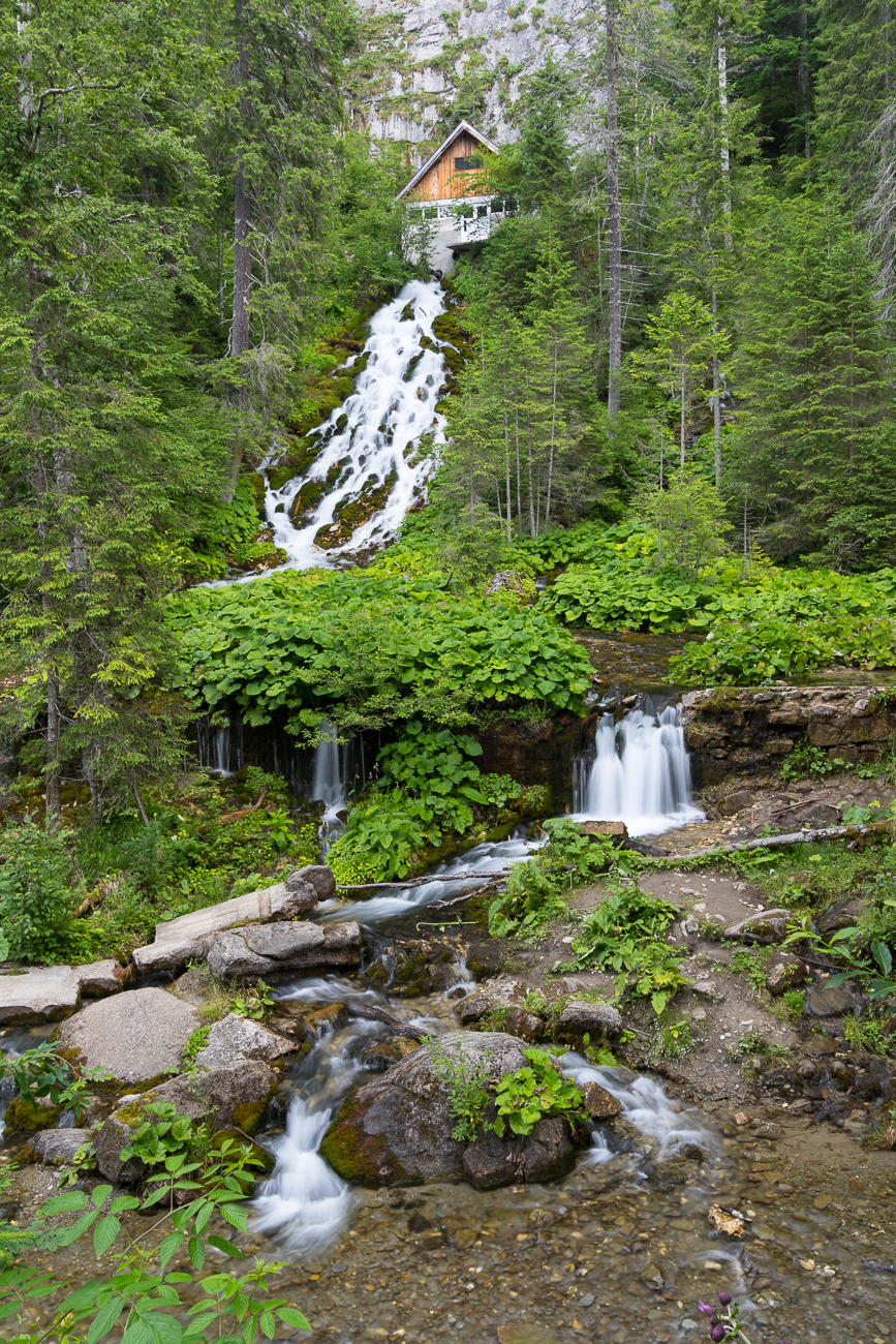 Iesirea din chei se face spre lacul Scropoasa, iar mai spre stanga, pe drumul de acces neasfaltat, se ajunge la cascada 7 Izvoare. Initial nu am mai vrut sa merg si la cascada, mai ales ca se strangeau nori de ploaie, iar undeva in departare se auzeau cateva tunete, partial acoperite de vuietul apei. Pana la urma mi-am asumat riscul de a fi prins de ploaie prin chei, asa ca am dat si o fuga la cascada 7 Izvoare. Alegere buna, tinand cont de faptul ca am scapat neplouat. Pana la urma vremea doar a vrut sa ma sperie putin.