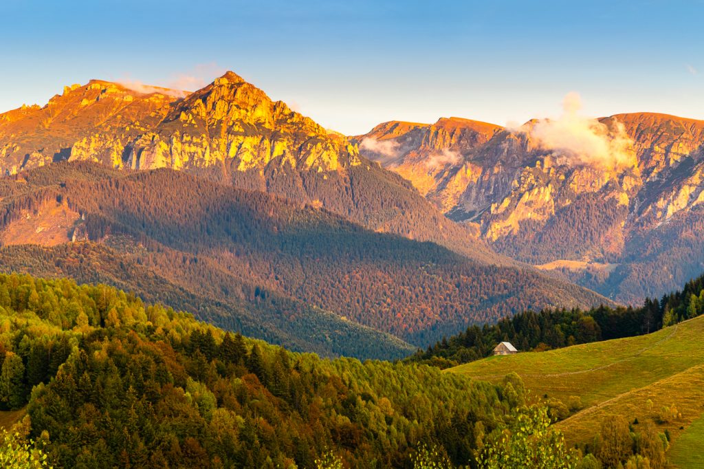 Am parcat repede mașina, am întins trepiedul direct acolo în parcare, lângă mașină, am scos repede camera foto din rucsac și m-am apucat să trag câteva cadre. Deja aveam compoziția în minte din momentul în care parcam mașina. Cred că era pe cât se poate de evidentă, puțin cer banal, o bucată interesantă din creasta munților Bucegi, plus ceva din dealurile verzi de la baza muntelui. Planul era să ajung puțin mai sus, pe dealul de lângă Amfiteatrul Transilvania, unde teoretic este și un punct de belvedere mai interesant. Dar nu mai aveam timp, riscam să ratez lumina și să mă întorc acasă cu mâna goală.